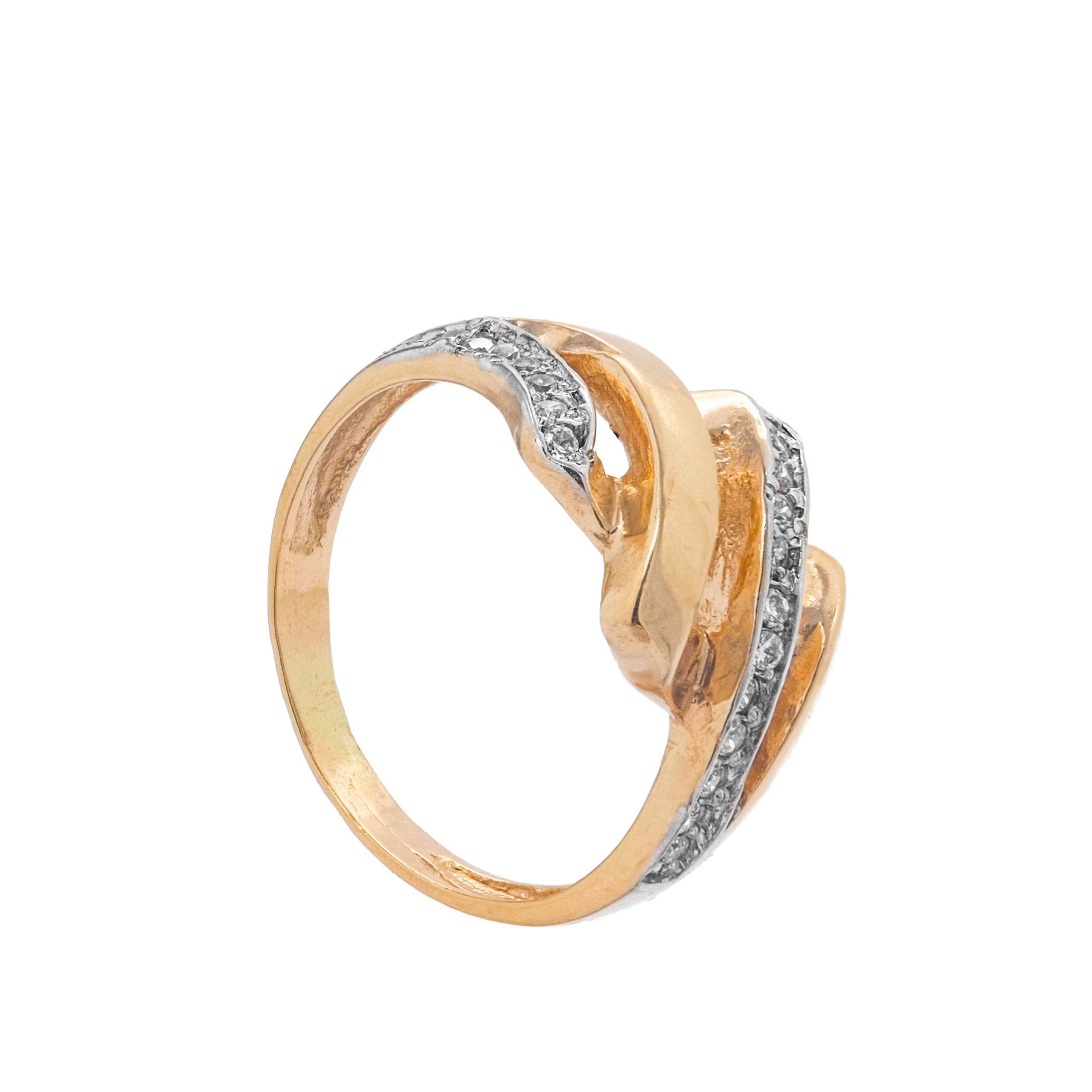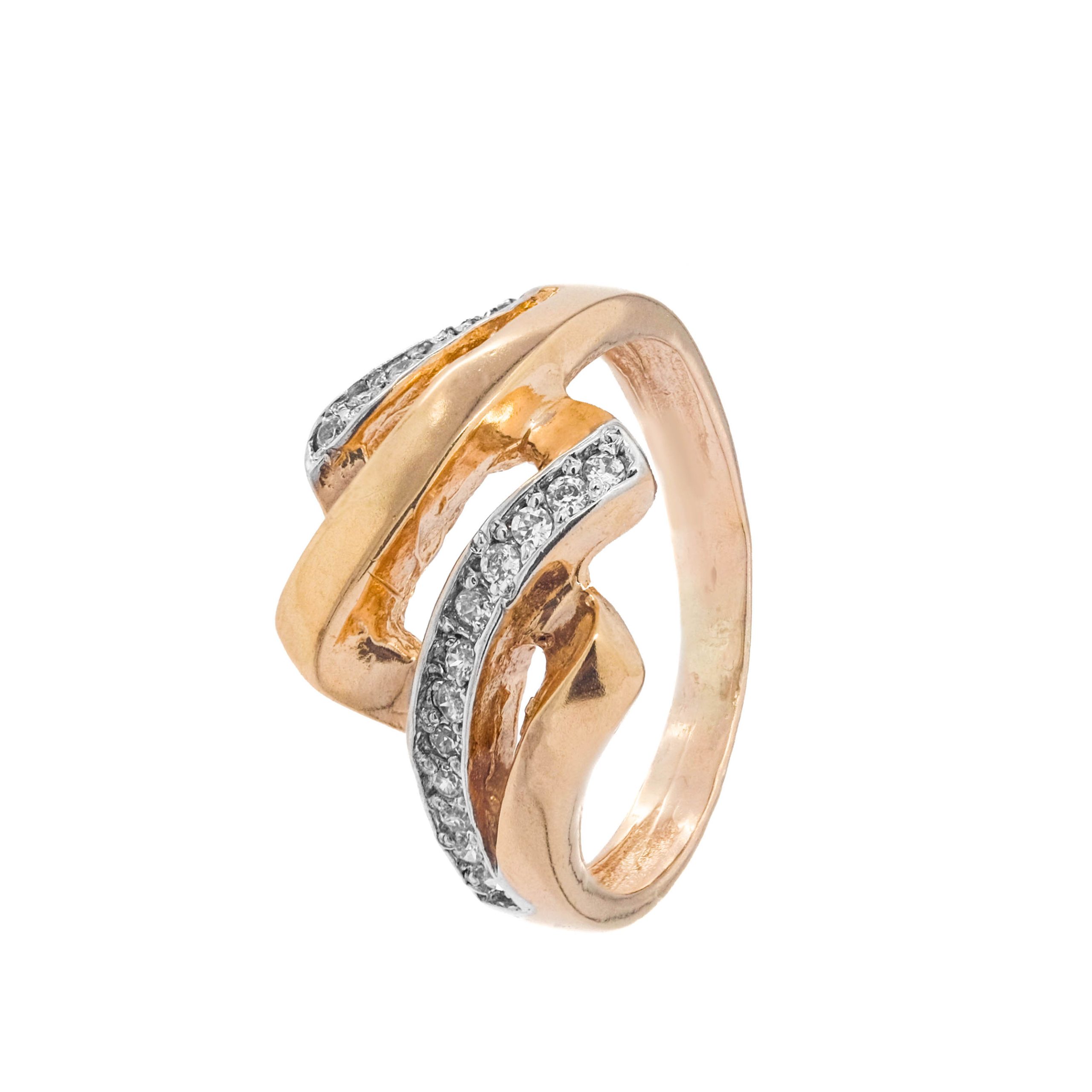 Moteriškas rausvo ir balto aukso žiedas su cirkonio akutėmis