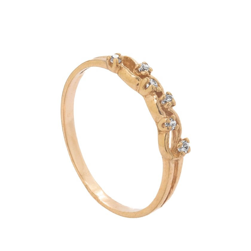 Moteriškas rausvo aukso žiedas su cirkonio akutėmis