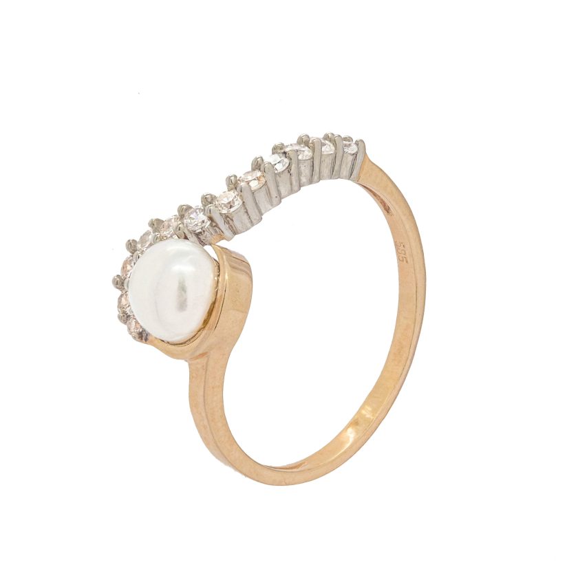 Moteriškas rausvo ir balto aukso žiedas su perlu ir cirkonio akutėmis