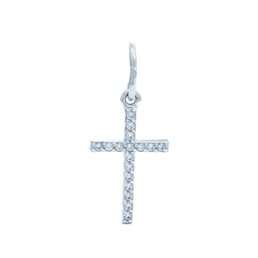 Balto aukso pakabukas “Kryžiukas” su cirkonio akutėmis