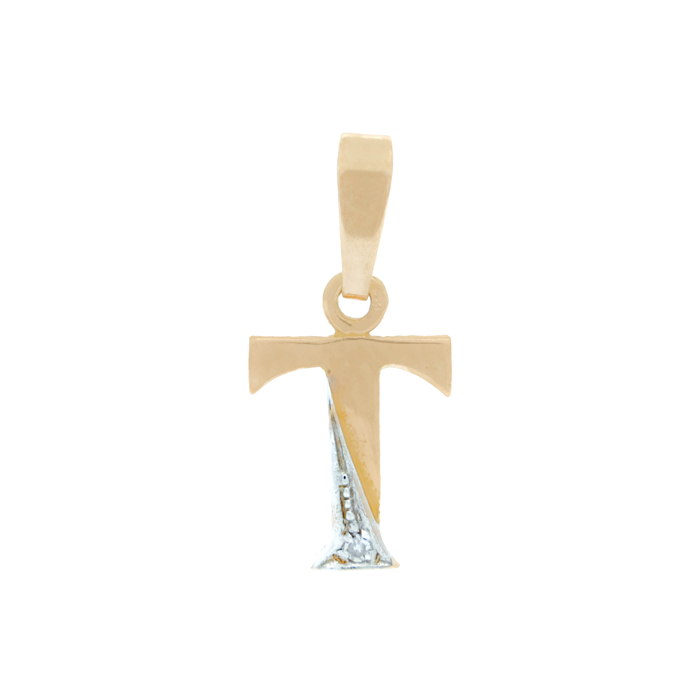 Rausvo ir balto aukso pakabukas “T” su cirkonio akute