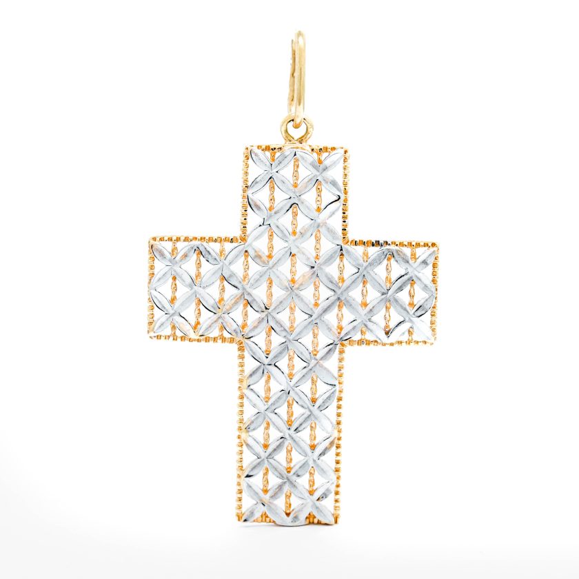 Rausvo ir balto aukso pakabukas “Kryžius”