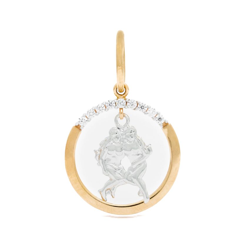 Rausvo ir balto aukso pakabukas “Dvyniai” su cirkonio akutėmis