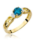 Auksinis žiedas su London Blue Topazu ir deimantais